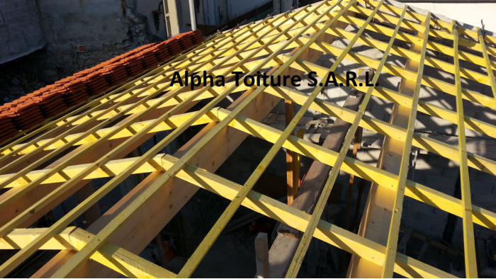 Le traditionnel, est une méthode qui est utilisé pour faire des toitures depuis des millénaires. La taille et la pose ont beaucoup évolués dans le temps. Cela peut être de simples pièces de bois mises en parallèles les unes aux autres, qui servent de support aux chevrons et aux tuiles, à des pièces d'une plus grande complexité appelées "Fermes", souvent utilisées pour couper les distances ou pour les toitures à plusieurs pentes. Voici un exemple, d'un chantier réalisé sur Carry le Rouet: Réalisation d’une toiture en traditionnel simple, garage à Marseille.Alpha Toiture.